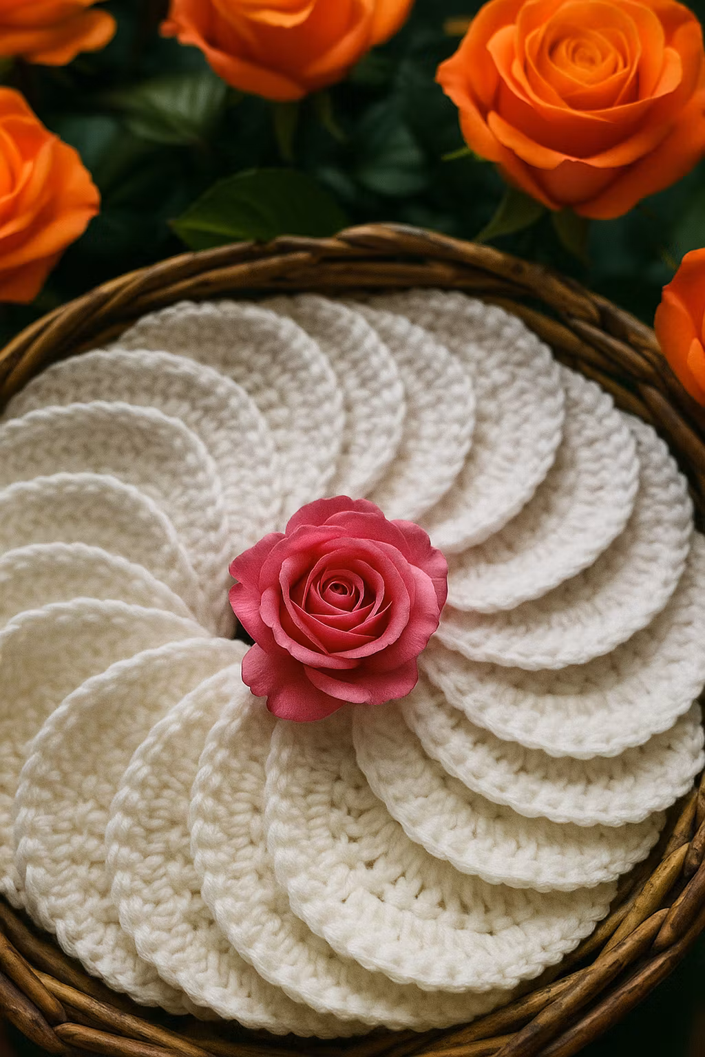 Med disse fine håndheklede bomullpads kan du fjerne makeup med. Kan gjenbrukes og vaskes på 40-60 grader.